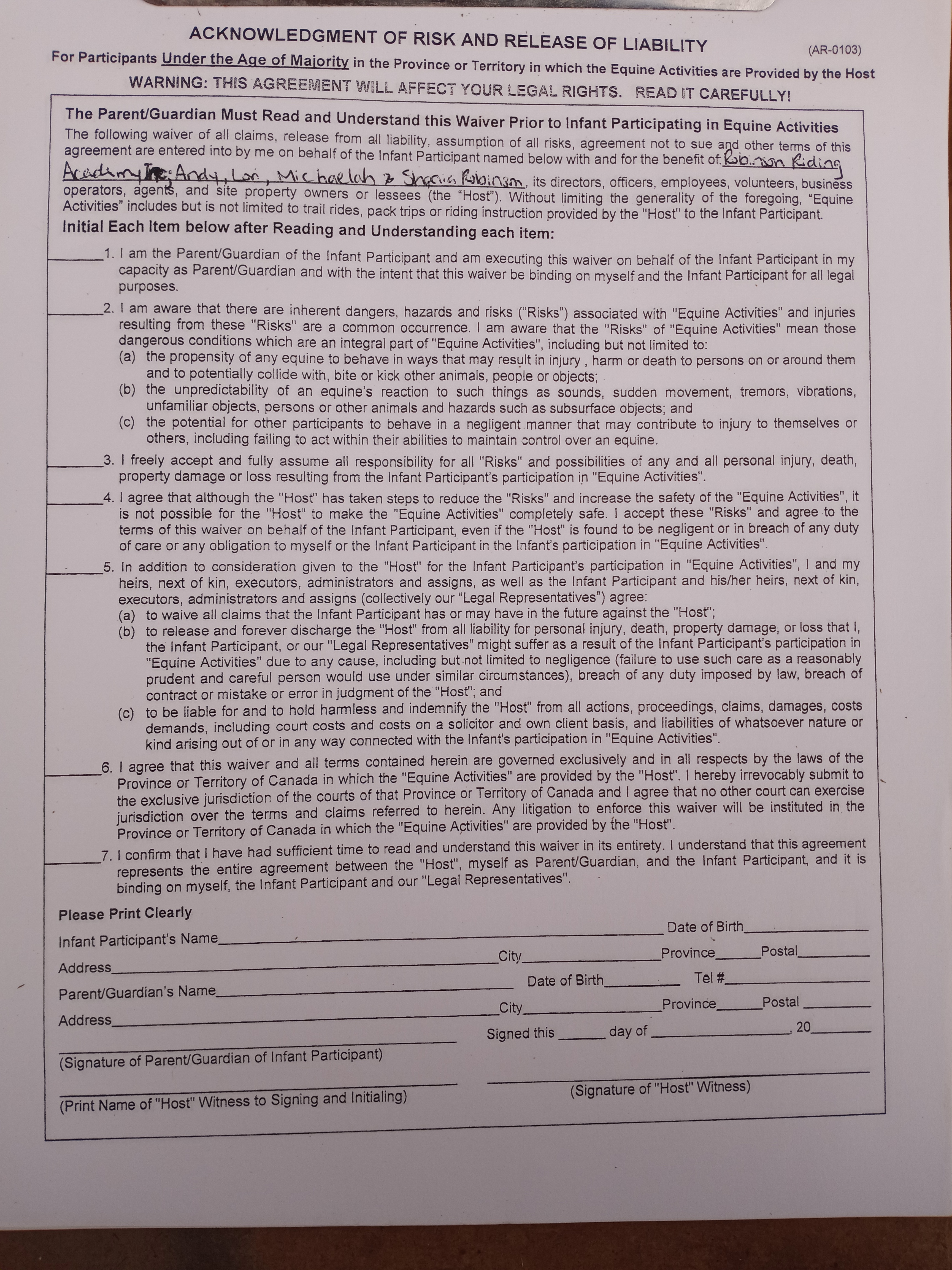Under 18 Waiver
